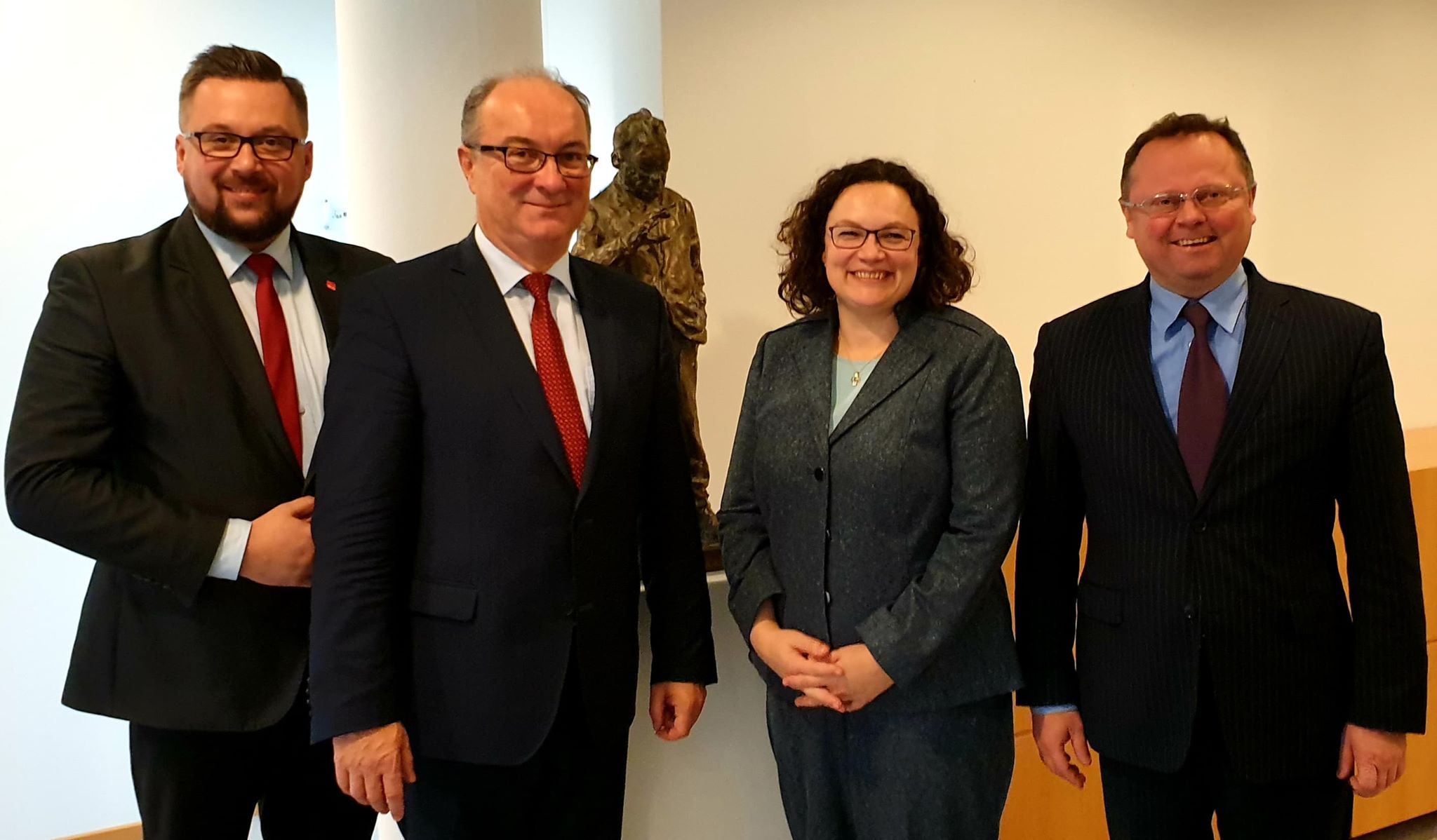 Przewodniczący Sojuszu Lewicy Demokratycznej Włodzimierz Czarzasty, sekretarz generalny Marcin Kulasek oraz wiceprzewodniczący ds. międzynarodowych Andrzej Szejna spotkali się w Berlinie z szefową SPD Andrea Nahles oraz ...